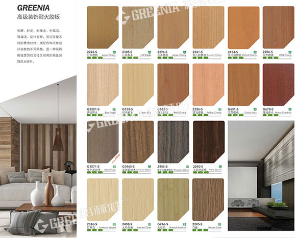防火板擁有非常豐富的表麵花紋色彩,其色彩的體現是由印刷成的裝飾紙提供展示的,所以靈活性也非常高,定製門檻很低。當然也不要認為印刷的色彩效果不好,高質量的裝飾紙印刷還原度是非常高的再配以多種多樣的表麵紋路處理,能夠帶來十分逼真的視覺感受。