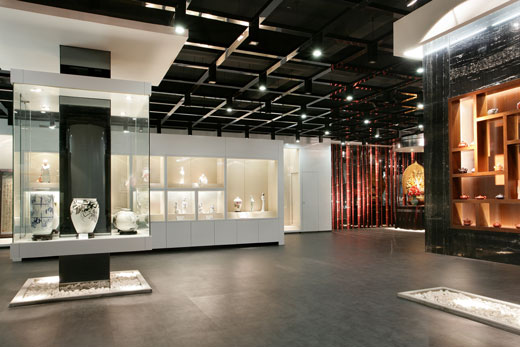 偉業陶瓷是一家從事酒店用瓷、日用陶瓷餐具的研發,製造和經營,集科、工、貿於一體的民營企業,是國內大型日用瓷器生產廠家之一,而廣東偉業陶瓷美術館是偉業公司做產品展示的美術館,采用霜白G101-S防火板做展櫃表麵裝飾,淺蛋殼色G141-S防火板做展櫃內飾背景板;