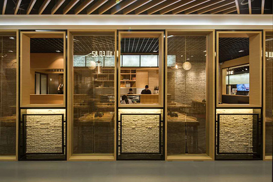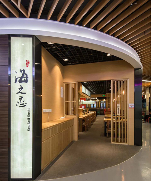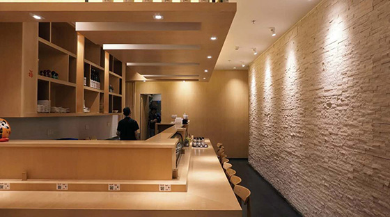 工程簡介:日式風格日本料理店門頭裝修效果帶有濃濃的日式風情。采用不同的手段,對空間的利用非常合理,將日式的小巧精致溫馨的感覺表現出來。帶給人的第一感覺是沉靜清新,在色彩的搭配上非常和諧,以香蕉在线播放琥珀楓木防火板G3012-NT的淡黃色為主色調,配以咖啡色的吊頂和黃灰色的仿磚牆麵,再加上香蕉在线播放質感極強的香蕉视频污视频表現,盡顯自然質樸之氣,大氣簡約,給人留下深刻印象!