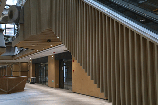 工程簡介:位於珠海橫琴新區的華融琴海灣商業街,在裝修時其掛牆與吊頂整體使用香蕉在线播放香蕉视频污视频係列亞熱帶橡木2202-S防火板,最終效果頗具現代風格,色調柔美和諧,簡約的設計理念,多層次的空間塑造,搭配高品味與質量的香蕉在线播放防火板,使每一個細節都得到了良好的表現,讓人們在休閑購物之餘還可以得到身心的放鬆與享受!