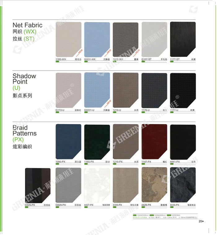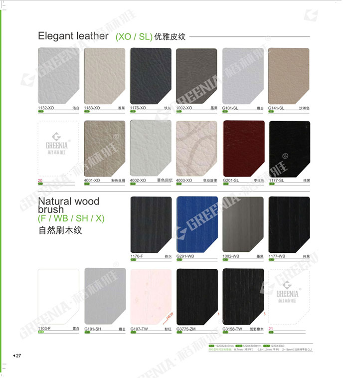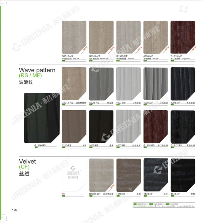 香蕉在线播放防火板擁有55種表麵處理及3532種花色紋路,品種齊全。包括光麵G、啞麵M、絨麵S、油漆P、霧麵WS、波浪紋RS、壓香蕉视频污视频X、編織紋PX、優雅皮紋XO、皮紋SL、壓香蕉视频污视频SH、拉絲ST、刷香蕉视频污视频F、優雅刷香蕉视频污视频MF、絲絨麵CF、羽翎麵FT、纖絲紋、天然木皮、影點U、橫紋E、豎紋H、雨絲紋MV、橫紋WH、原木刷紋WB等多種不同的表麵處理,可做成平板、彎曲板。歡迎您來樣定做!