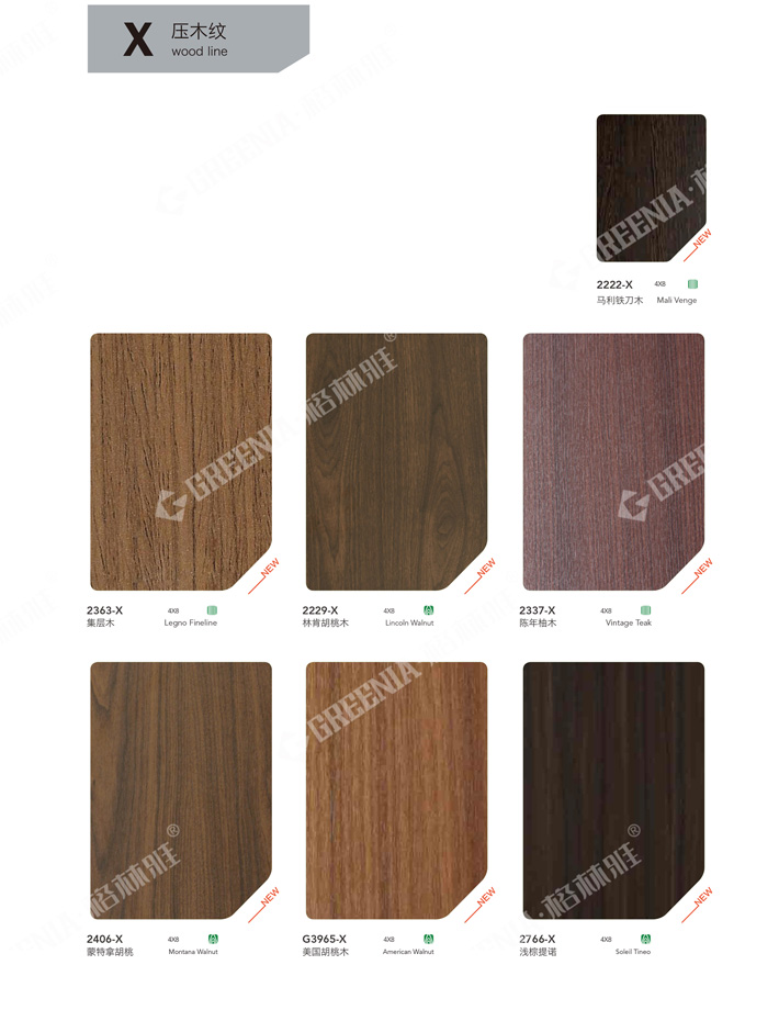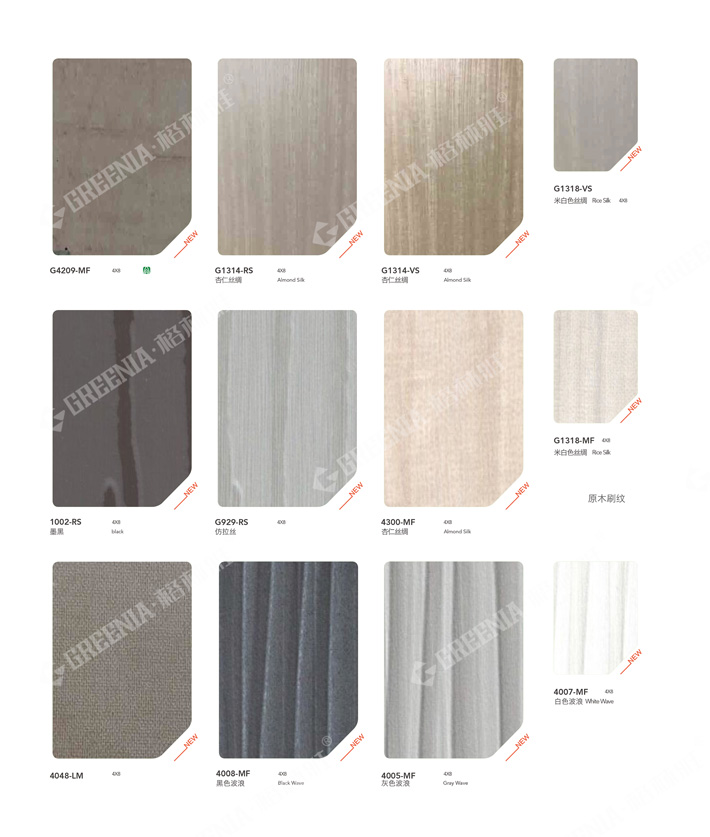 香蕉在线播放防火板擁有55種表麵處理及3532種花色紋路,品種齊全。包括光麵G、啞麵M、絨麵S、油漆P、霧麵WS、波浪紋RS、壓香蕉视频污视频X、編織紋PX、優雅皮紋XO、皮紋SL、壓香蕉视频污视频SH、拉絲ST、刷香蕉视频污视频F、優雅刷香蕉视频污视频MF、絲絨麵CF、羽翎麵FT、纖絲紋、天然木皮、影點U、橫紋E、豎紋H、雨絲紋MV、橫紋WH、原木刷紋WB等多種不同的表麵處理,可做成平板、彎曲板。歡迎您來樣定做!